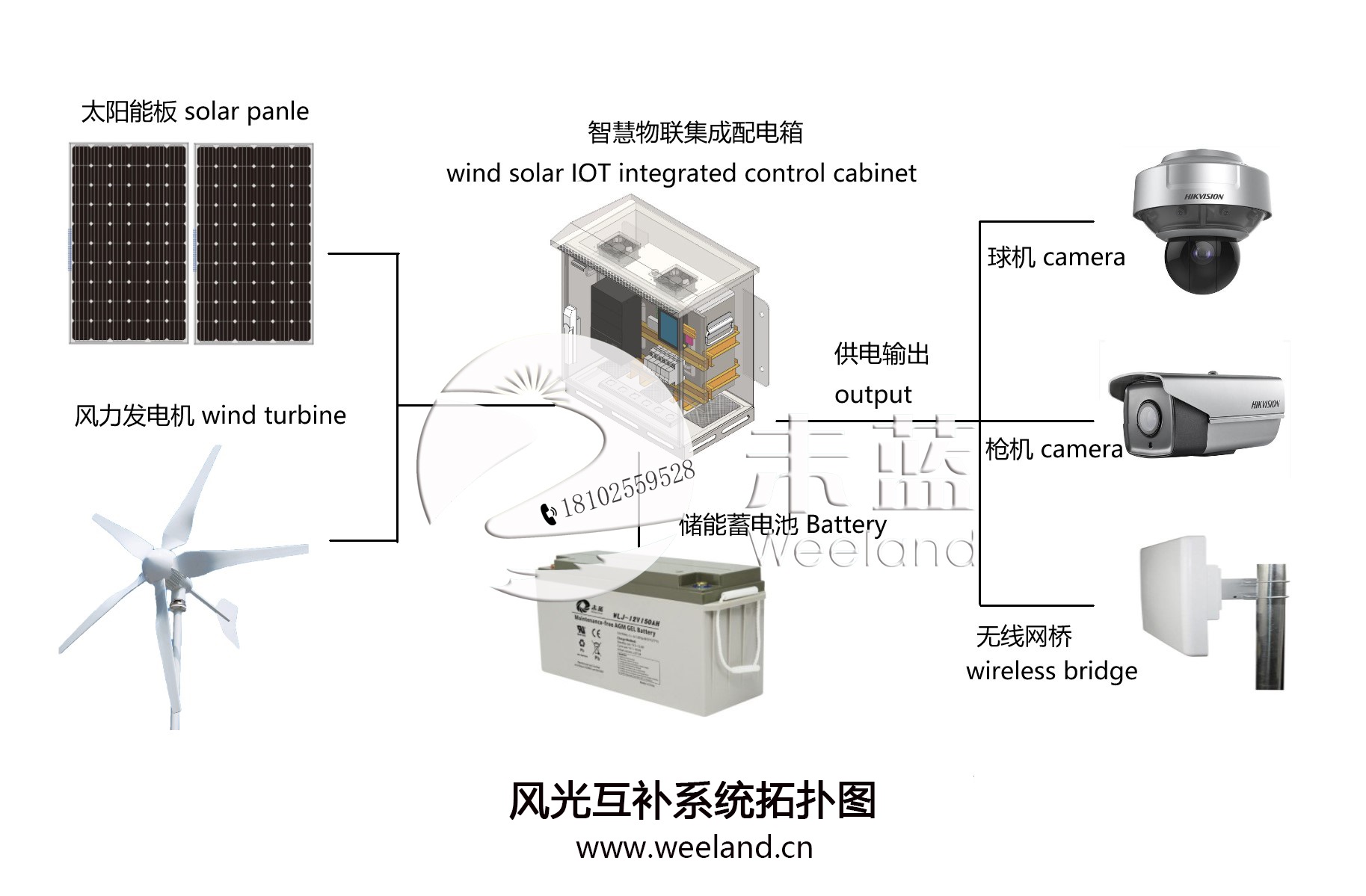 紧贴用户业务需求,基于物联网视频远程无线监控系统,未蓝新能源提供专业的风光互补供电/太阳能供电技术方案,在无人值守的恶劣环境下,通过太阳能供电、风光互补供电、4G传输又或无线网桥传输,给前端负载提供源源不断的绿色电力及信号传输,两种能源发电形式相互补充的资源优势,取之不尽的能源,不但节能环保,且顺应未来发展,不接入市电网,完全自给供电,低成本高回报率,实现全天候、长期连续在线监测。一体化风光智慧物联集成,模块化设计,产品高集成、易安装、易维护、可物联、低能耗、可定制、可扩展”,基于物联网的风光互补/太阳能发电监测系统,实时采集风能、太阳能供电系统运行参数,环境参数;具备对蓄电池数据、太阳能系统数据、负载电流、工作时候的温度等工作电源状态进行监测和上传功能,同时可实现数据回传OSD画面叠加显示。对数据来进行调用分析后进行设备故障报警、设备状态预测与故障预报,提供设备故障维修、决策和分析;具备对设备的远程控制功能,可在预设条件或远程指令控制下开启和关闭前端装置的供电电源;系统支持远程自诊,通过远程技术上的支持,系统对实时数据的记录支撑了故障溯源分析,有实际效果的减少人工经验判断的误差,实时监控与部件生命周期管理,便于按时换部件及排除安全风险隐患,保障系统发电的稳定。同时风光互补/太阳能供电系统采用的是独立的离网式供电系统,不受电力安装的地方的影响,也不需要开挖路面做布线埋管施工,现场施工和安装都很方便,综合经济效益好,同时对已建成的项目后期升级改造采用风光互补发电系统非常方便。